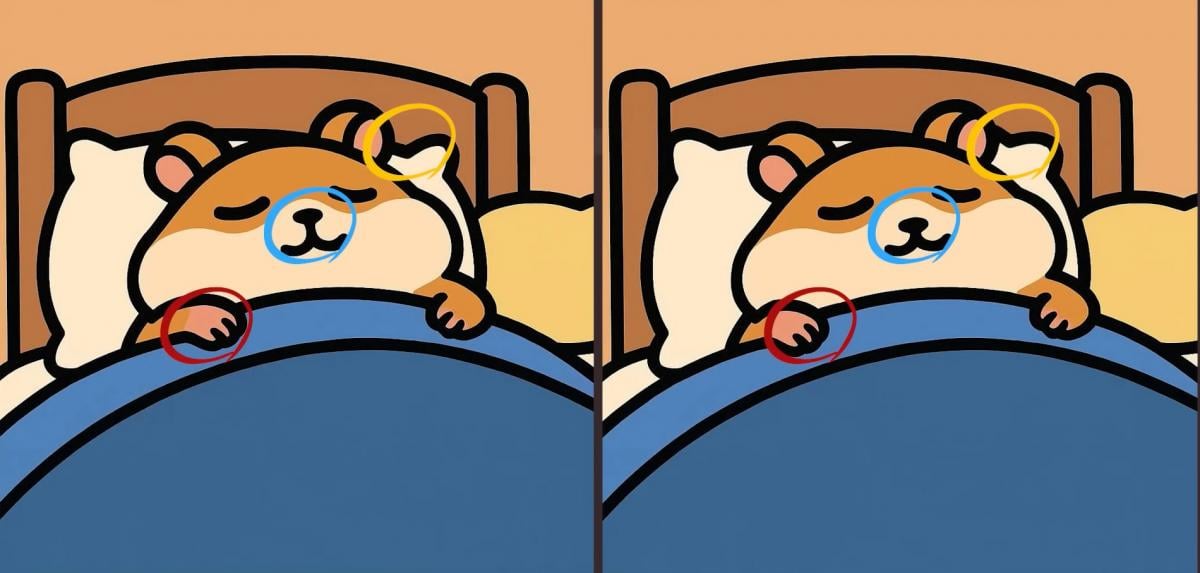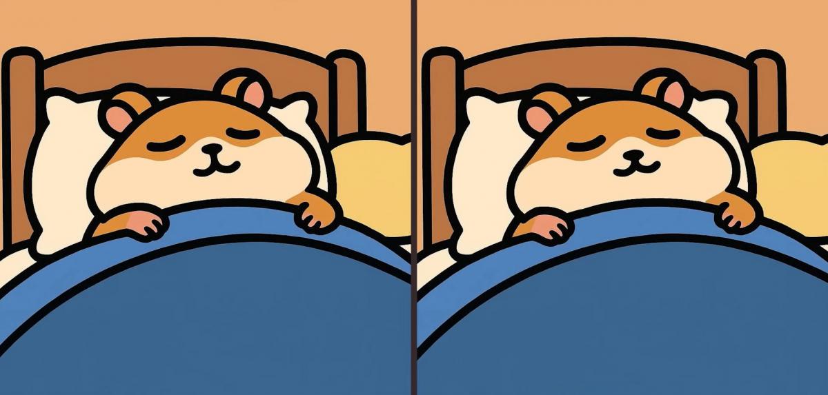 Então, estás pronto para o próximo desafio? Observe com atenção as d imagens de um hamster a dormir. Podem parecer igs à primeira vista, mas há 3 pequenas diferenças. Achas que consegues encontrá-las todas em 29 segundos? Experimenta e testa a tacuidade vis!