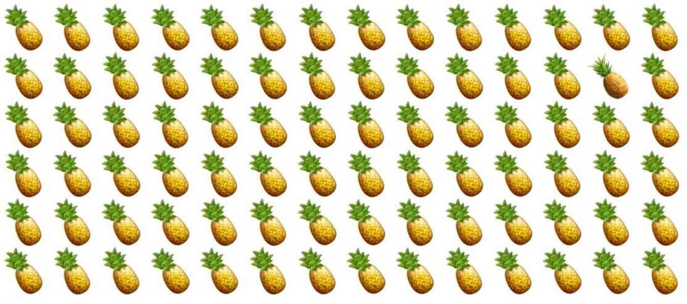 Resolve um puzzle simples, mas muito complicado – terás de encontrar um ananás especial, que é diferente de todos os que vês na imagem.